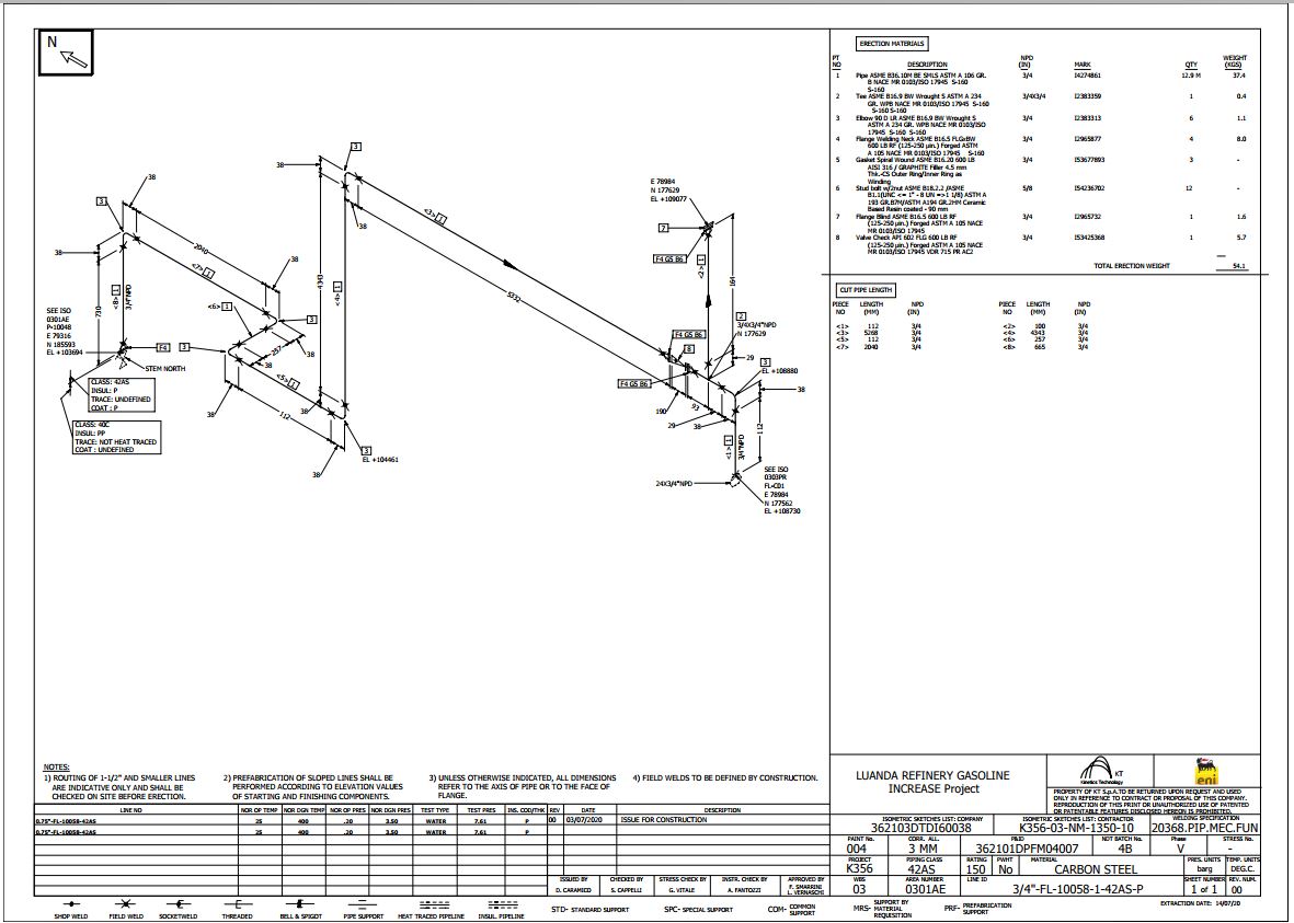 - Extraction of piping plans and isometrics from the model with verification